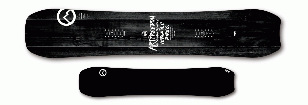 ARTISTE를 베이스로 개발된 프리라이드 모델. 다루기 쉬운 플렉스와 조작성 높은 토션을 가지면서 우수한 활주성능을 더한 모델입니다. 낮음 캠버와 살짝 말린 킥커 형태의 베이스가 파우더를 포함한 어떠한 조건의 눈에서도 우수한 주파성능을 발휘합니다. 테이퍼 쉐이프에 의한 쉬운 턴 성능과 우수한 활주력으로 호쾌한 프리런을 가능하게 합니다. 물론 깔끔하게 잘리는 카빙성능도 우수합니다. 또한 ARTFREEDOM은 다채로운 셋팅이 가능한 VERSATILE HOLE PATTERN을 채용. 셋백 0 포지션에서는 트윈팁과 비슷한 필링을 살려서 파크를 공략하기 좋고, 셋백을 많이 주는 것으로 파우더에서의 부력이나 하이스피드 프리런 성능을 향상시킬 수 있습니다. 다양한 스탠스 포지션에 따른 자신만의 스타일이나 상황에 맞춰 대응캐 해주는 자유도 높은 모델입니다. 20/21 모델에서는 초경량 FM2 CORE를 새로이 채용. 향상된 컨트롤과 스핀성능을 실현하였습니다. 또한 스퀘어 노즈를 채용하여 파우더 활주시의 부력과 주파성이 대폭 향상되었습니다.
