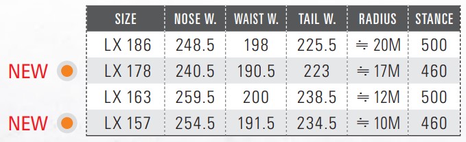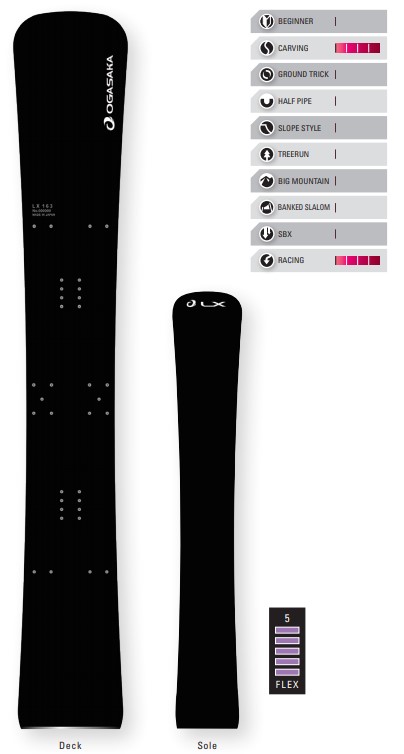 | 특징 | 「LX」는 OGASAKA SNOWBOARDS가 축적한 모든 경험과 기술력을 쏟아부어 만든 알파인 스노우보드의 탑 스펙 모델입니다. 전례없는 결과를 향하여 세계무대에 도전하는 출산의 심정을 표현한「Lucida」(갈고 닦다)와「X factor」 (미지의 요인)이 합쳐져 LX의 이름이 되었습니다. 일본인 남자선수로 유일하게 평창올림픽에 출전한 시바 마사키 선수가 개발을 담당하여 세계무대에서 최고의 퍼포먼스를 발휘하기 위해 진화를 거듭하고 있는 레이싱보드입니다. 항시 개발을 진행하기 때문에 마사키 선수가 사용하는 것과 스펙이 완전히 같지는 않지만, 시판화를 진행하면서 최대한 그에 가깝게 만들려고 하였습니다. 조작난이도가 상당히 높고 많은 라이딩 스킬을 요구하지만 고속안정성과 가속성은 모든 모델 중에서도 궤를 달리합니다. 기업비밀인 부분이 많지만 일단 타보면 마사키 선수가 추구하는 것이 무엇인지 느낄 수 있을 것입니다. 21-22모델부터 여성사이즈「178」과「157」 이 새롭게 추가되었습니다. |