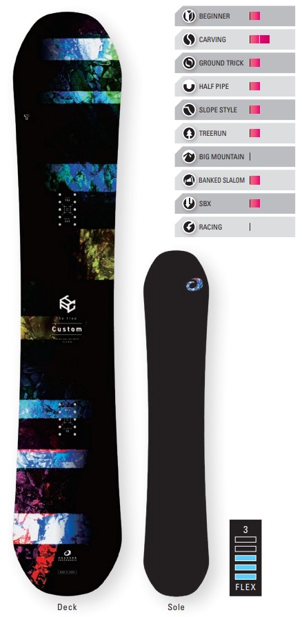 | 특징 | 「TF-C」는 TF를 베이스로 두꺼운 심재를 사용하여 플렉스 발란스를 조절하여 고속 영역에서의 라이딩에도 대응하는 올라운드보드 시리즈의 커스텀모델입니다. 프리캠버 구조와 각진 형태의 노즈·테일은 더욱 경쾌한 라이딩을 제공하고 턴을 할 때 발에 느껴지는 묵직한 그립감의 신기한 느낌의 보드입니다. 센터포지션으로 서서 포지션을 유지하는 것만으로 고속카빙이 시작되고 그라운드 트릭, 지형, 점프, 파우더 - 이 모든 것을 즐길 수 있게 해줍니다. 해머헤드 형태의 카빙보드를 타는 분께도 추천하는 올라운드보드입니다. 스노우보드 라이프에 있어서 새로운 형태의 보드를 타다 보면, 새로운 라이딩과 즐기는 방법을 찾게 되는 경우가 많습니다. 그러한 기회를 「TF-C」가 제공할 것입니다. |