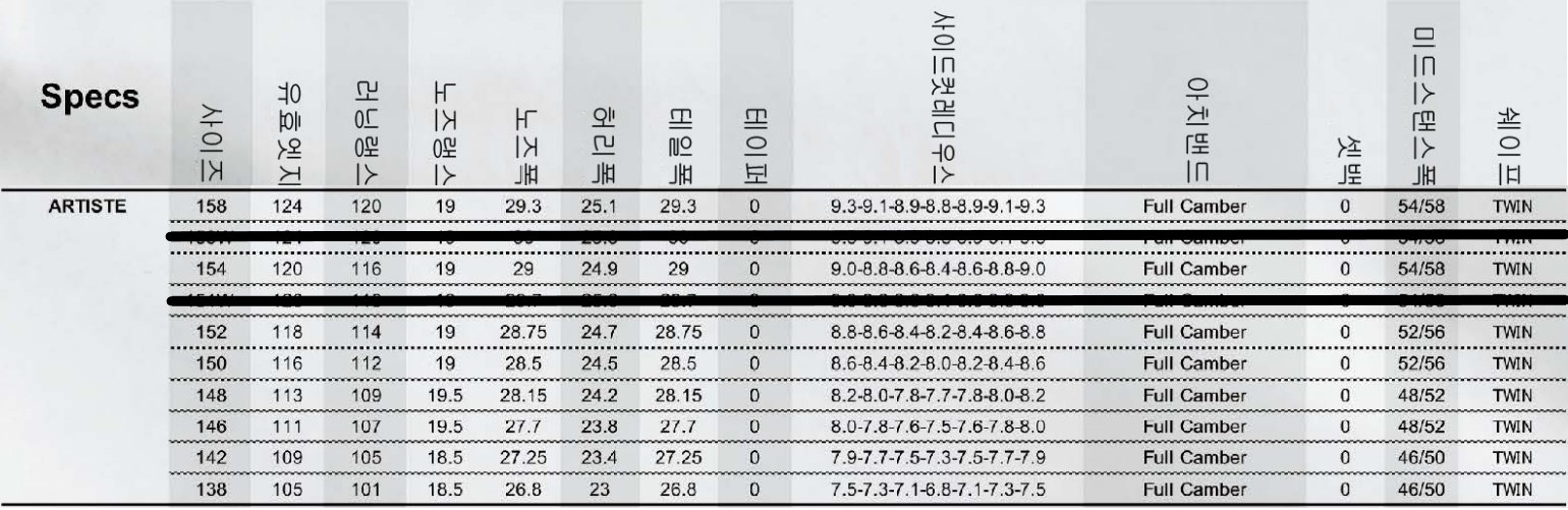 | 특징 | *풀모델체인지된 ARTISTE의 그래픽모델 「가능한 많은 것을 가능하게 하는, 1장으로 모든게 다 가능한 보드는 많아. 나머지는 실력의 문제지」 슬로프스타일의 하나의 지표로 만들면서 가능한 모든 방향성을 높이는 작업, 그것이 ARTISTE가 추구하는 디자인테스크입니다. 올라운드풀모델의 대표격으로 망설임 없이 추천하는 모델입니다. *그레픽리미티드에는 와이드버젼이 없습니다 |