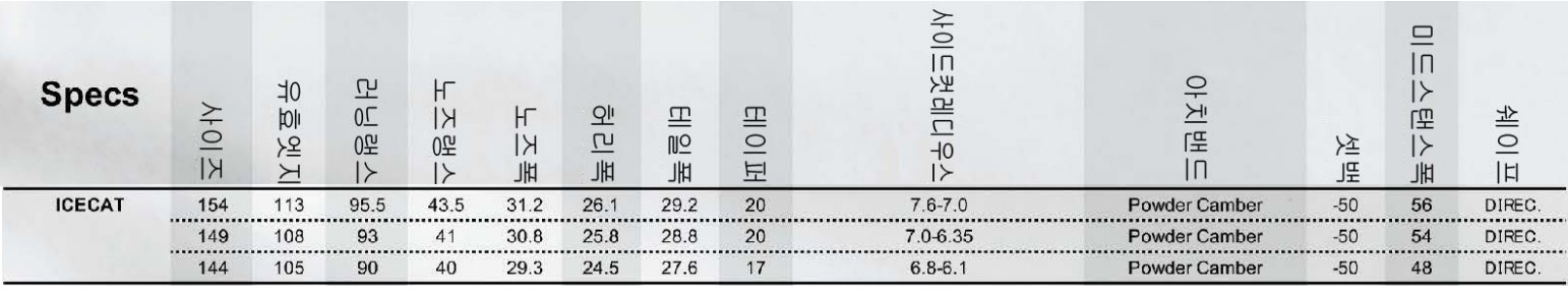 | 모델명 | ICECAT(Powder, All terrain, Carving) |