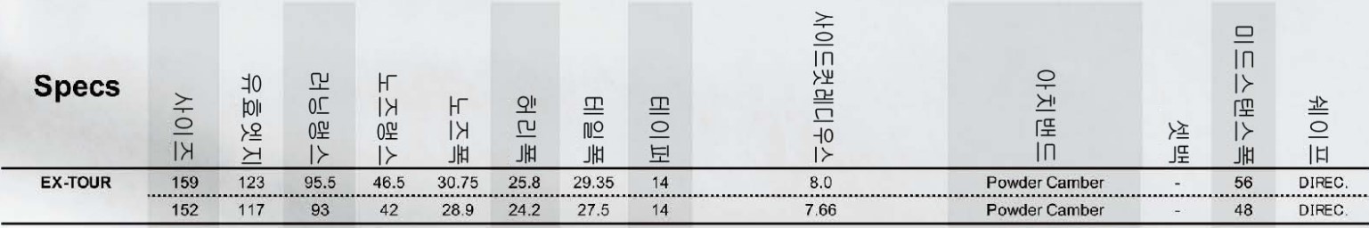 모델명 | EX-TOUR(Powder, All terrain, Carving, Hiking) |