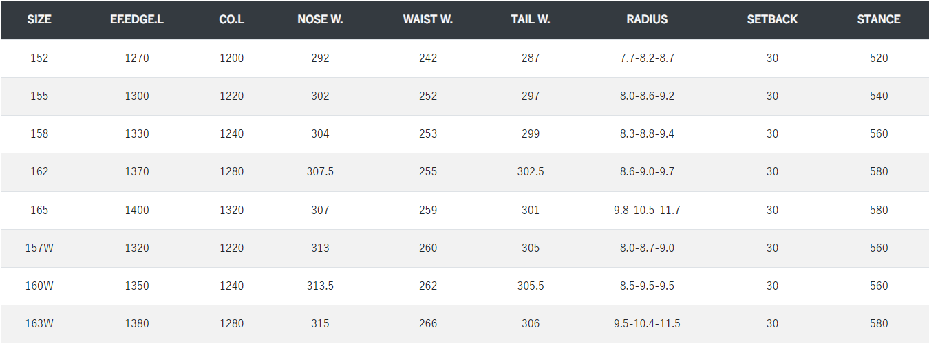 | 특징 | 「FC-S」는 고속 영역에서의 추진성을 고려하여 설계한 FC 시리즈의 엑스퍼트 모델로 JSBA 테크니컬 선수권에서 전인미답의 11번 우승 경험을 가진 나카모토 유코가 사용하고 있습니다. S는 「Stiff(단단하다)」를 의미하지만 CT와 CT-S의 차이처럼 딱딱할 뿐만 아니라 FC보다 사이드 커브를 얕게 설계 턴 전반에서 제대로 보드를 세워 압력을 가하고 휘어지게 할 수 있다면 파고든 파워가 점점 추진력을 바꿔 가속하는 듯한 감각으로 미끄러질 수 있습니다. 또한 글래스보드는 메탈보드에 비해 설면 컨디션에 좌우되기 어려운 성질 때문에 최근 테크니컬 선수권에 출전하는 선수들 중 상당수가 메탈보드에서 글래스보드로 옮겨오고 있습니다. 많은 선수들이 활주해 코스가 거친 상태에서도 최고의 퍼포먼스를 발휘해 주는 것이 FC-S의 매력입니다. 22-23 모델의 와이드 사이즈(157W/160W/163W)는 다른 컬러로 전개됩니다. |