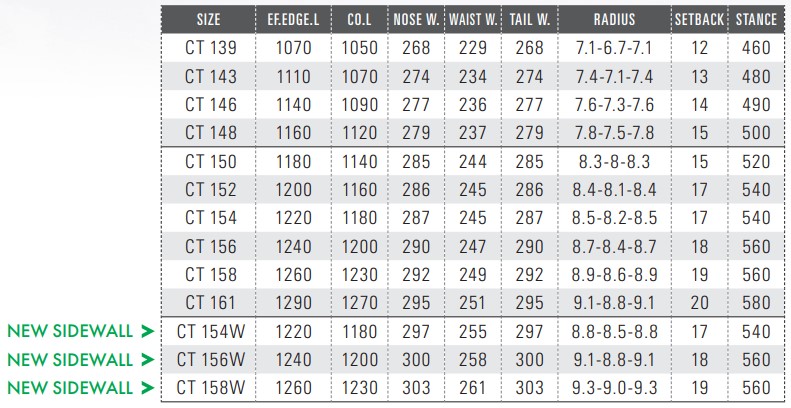 | 특징 | CT는 OGASAKA SNOWBOARDS 중에서 가장 인기 있는 모델로 「고민되면 CT」라는 말이 생길 정도입니다. 라운드 형태, 디렉셔널, 캠버 구조의 전통적인 프리스타일 보드로 순수하게 카빙을 즐기고 싶은 분께 폭 넓은 선택을 받고 있습니다. 보드 전체의 플렉스를 부드럽게 설계하여 가볍게 눌러주기만 해도 보드가 깔끔한 곡선을 그리며 누워주고 보드 전체로 설면을 그립하여줍니다. 스위트 스팟이 넓고 체중을 싣는 위치(포지션)에 예민하지 않아서 기분 좋은 턴을 만듭니다. 기울임의 반동을 이용하여 엣지의 전환도 경쾌합니다. 올라운드 보드로써의 안정감과 조작성을 겸비하였고, 초심자 부터 프로페셔널 유저까지 폭 넓은 층에게 사랑 받는 「CT」23-24 모델에는 와이드 사이즈 사이드월을 변경. 엣지그립의 강화로 턴 성능을 더욱 향상시켰습니다. |