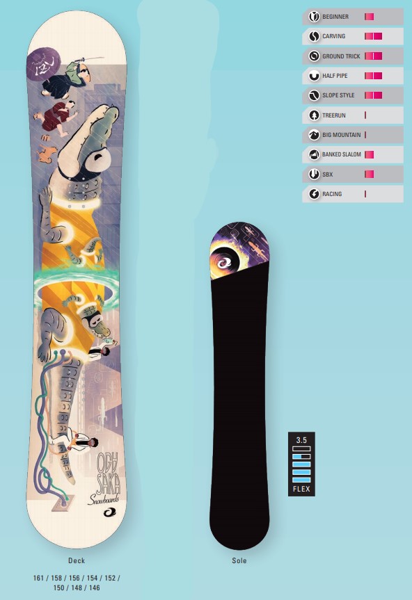 「CT-KD」의 컨셉은 CT 시리즈의 「어린이판」어린이용으로 짧고 소프트 플렉스로 설계한 것이 특징입니다. 스노보드는 실력 차이가 있는 사람들 끼리도 함께 즐길 수 있다는 특징이 있습니다. 부모와 아이도, 실력차이에서 오는 타협점을 찾기 보다는 카빙을 마스터 하여 함께 즐길 수 있었으면 합니다. 소재와 형태 그래픽 모두를 성인사이즈 보드와 똑같이 만들었습니다. 아이와 함께 카빙에 도전하여 스노보드를 즐기시길 바랍니다.