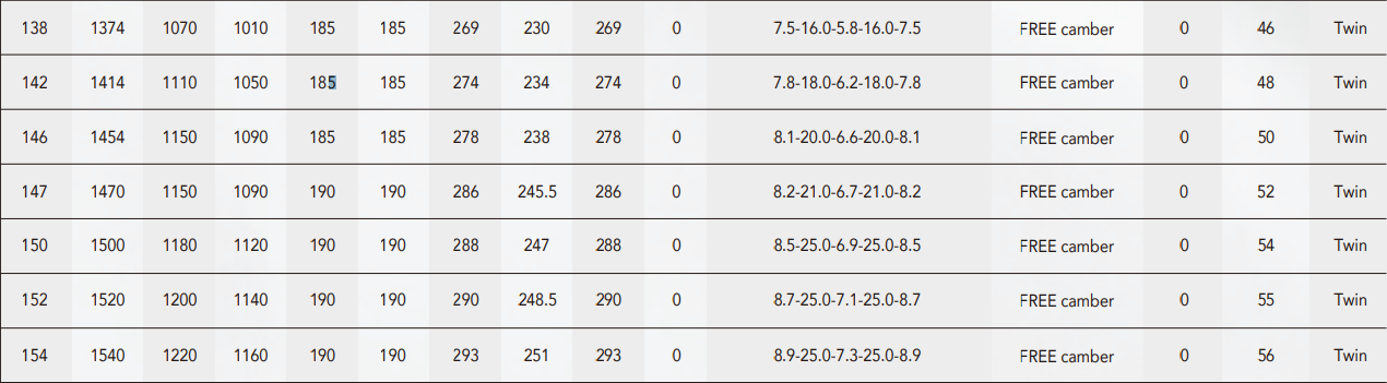 NOVEMBER 브랜드가 자랑하는 고성능 소프트 플렉스 모델. 다루기 쉬운 플렉시블함과 경량인 스윙 웨이트에 의해 트릭의 습득을 편하게 할 수 있습니다. 특히 라이딩 트릭에 대응하는 프레스 성능을 가지고 있습니다. 엔트리 유저에게도 대응합니다. 유니섹스 사이즈의 138, 142, 146과 남성 사이즈의 147, 150, 152, 154의 7 사이즈의 전개입니다.