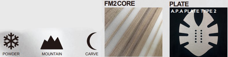 FREE CAMBER, FLASH GRIP SIDECUT, A.P.A PLATE TYPE 4 (Duck plate), W POWER CARBON RIBBON, SUPER LIGHT CORE