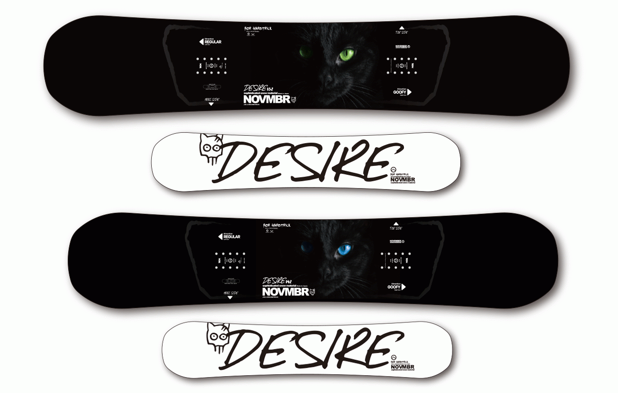※쉐이프는 DESIRE와 동일한 몰드를 채용. 프리캠버를 채용해서 드라이브 성능과 프레스 성능을 향상시킨 높은 컨트롤 성능을 발휘합니다. 또한 프리 라이딩에서의 엣지 그립력이 높아 깔끔한 카빙턴을 만듭니다. 소프트 플렉스 이면서 프리런 성능과 트릭성능을 추구한 새로운 모델입니다.