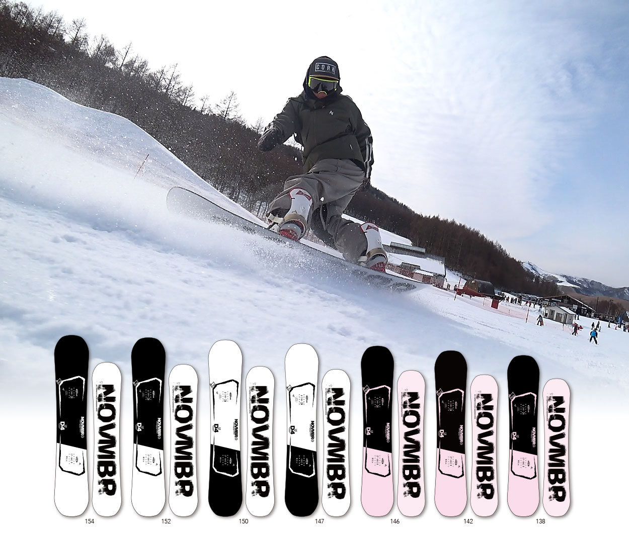 라인업중에서 가장 소프트한 플렉스를 가진 풀트윈 모델. 쉐이프와 내부구조가 전후대칭인 풀트윈 구조로 레귤러/스위치 어느 쪽에도 위화감이 없는 컨트롤 성능을 가지고, 트릭의 베리에이션을 넓혀주는 고성능 모델입니다. D4는 보드 윗면에 채용하고 있는 유리섬유를 베이스 쪽 보다 소프트하게 설정하여서 상부와 하부의 탄성률의 차이를 두는 것으로 소프트 플렉스 이면서도 높은 반발력이라는 상반된 성능이 양립합니다. 또한 발바닥에 독자개발한 DUCK PLATE(TYPE4)를 장착. 발 주변과 스탠스 사이의 자유도를 향상시켜서 양 발에 독립적인 움직임을 확보하여 그라운드 트릭이나 지빙에서의 섬세한 움직임에 대응력을 향상 시켰습니다. 보강재로 노즈와 테일에 CARBON RIBBON 25W배치한 W POWER CARBON RIBBON을 채용 하여서 트릭의 발동과 알리에 필요한 스냅력을 강화. 노즈/테일을 튕기는 느낌을 강하게하여 고회전 스핀과 더 높은 알리를 가능하게 합니다. 20/21 모델에서는 새롭게 DESIRE와 같은 몰드를 채용. 거기에 프리캠버를 채용하여 프레스나 드라이브 성능이 향상되었습니다. ※지난 시즌보다 플렉스를 더 소프트하게 변경. 휘어짐을 사용한 프레스 계열 트릭이 쉬워졌고, 작은 힘으로도 쉽게 조작할 수 있습니다. 더 크게 솟은 형태의 컨백스솔을 채용하여 스무스한 스윙 성능과 드라이브 성능을 겸비 하였습니다. 순간적 엣지그립력을 높인 FLASH GRIP SIDECUT을 채용 하였습니다.