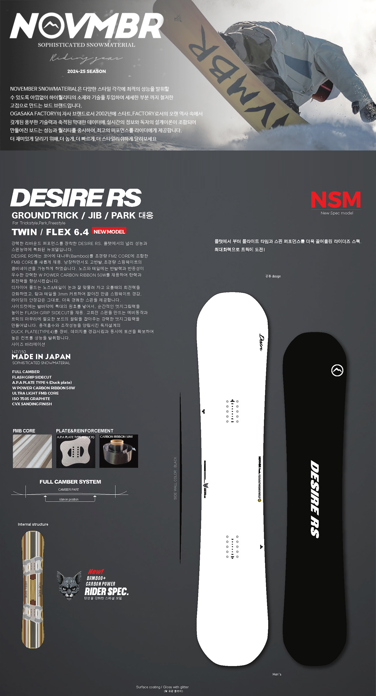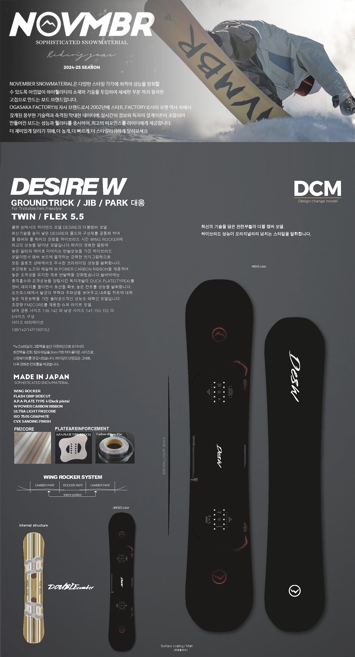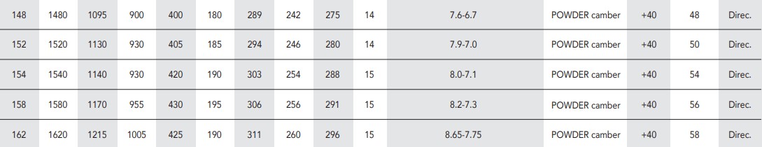 | 구성재료 | POWDER CAMBER, POWDER ROCKER NOSE, A.P.A PLATE TYPE 3 EVO, ULTRA LIGHT FM2CORE |