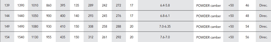 | 구성재료 | POWDER ROCKER, POWDER ROCKER NOSE, A.P.A PLATE TYPE 3 EVO, ULTRA LIGHT FM2CORE |