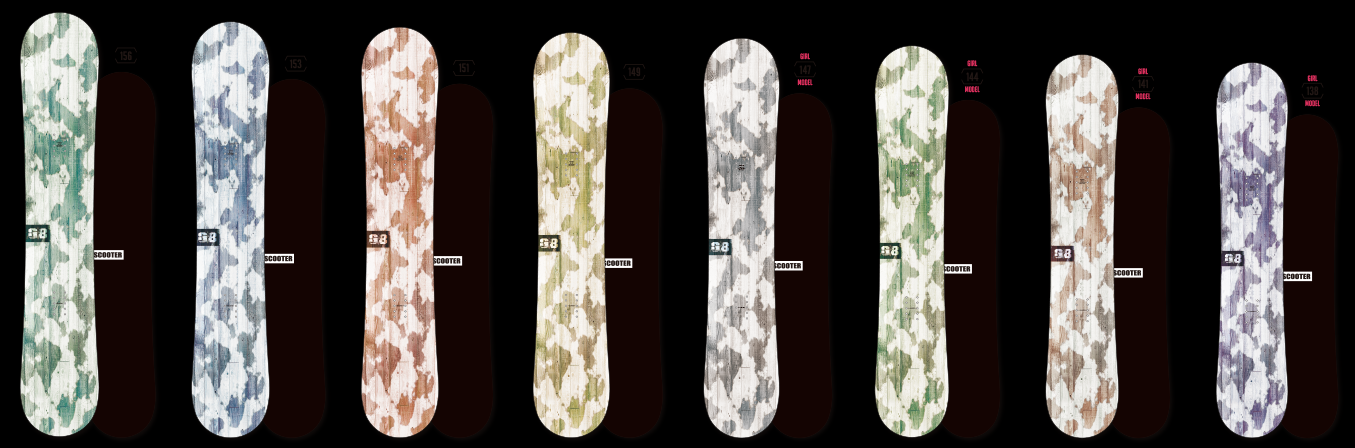 | SIZE | EF.EDGE.L | CO. L | NOSE W. | WAIST W. | TAIL W. | RADIUS | SETBACK | STANCE |