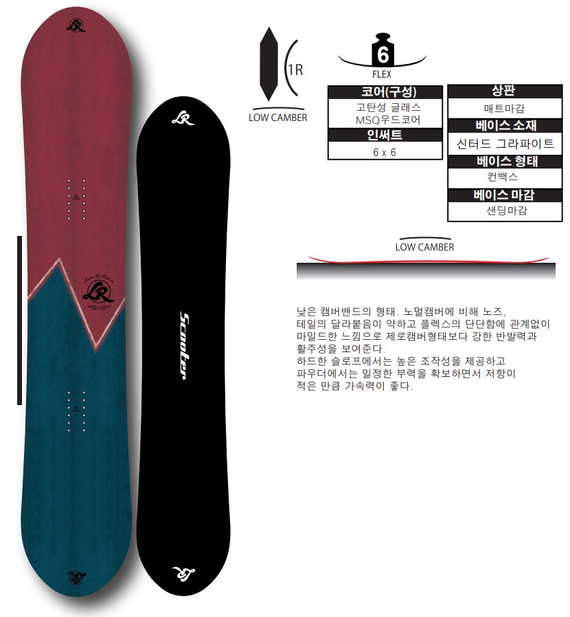 특징 평소에는 파크나 지빙을 즐기면서 눈이 내리면 그대로 파우더에서 쾌적하게 즐기고 싶은, 파우더에서도 스위치나 트릭을 마음껏 하고 싶은 분들의 요구에 맞춘 파우더트윈팁 Lo-Rider입니다. 커다란 킥을 가진 트윈쉐이프에 로우캠버로 구축된 발란스는 경쾌한 트윈의 조작성을 확보하면서 부력을 발생시키고, 파우더나 지형에서도 발군의 컨트롤성을 제공합니다. 와이드함이 거슬리지 않는 킥형태, 로우캠버트윈의 장점을 활용한 경쾌한 조작성으로 파크와 지빙아이템은 물론 초심자들도 다루기 쉬운 스펙을 가집니다. 익숙해지면 파우더 속에서도 섬세한 컨트롤이 가능합니다. 하드한 슬로프에서도 엣지그립이 좋고, 설질을 따지지 않는 카빙성능이 매력적입니다. 초심자도 컨트롤이 쉬운 Lo-Rider로 지빙, 파크, 파우더 이 모든 곳을 1장으로 즐길수 있습니다.