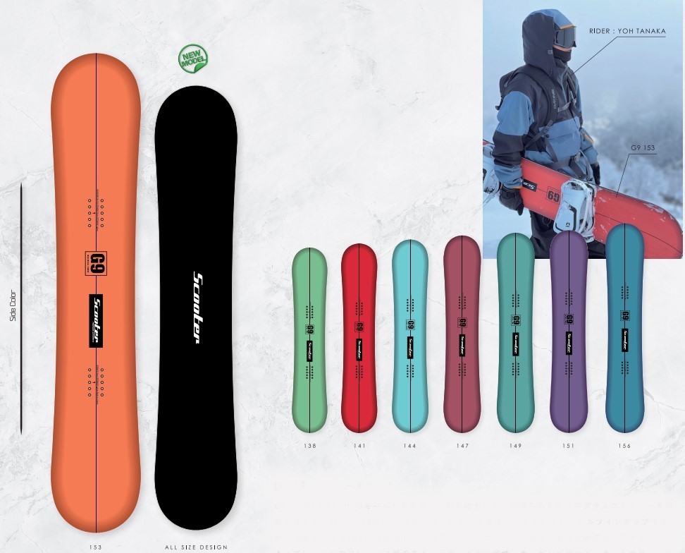 | 특징 | 발군의 컨트롤로 호쾌한 프리런을 제공하는 디렉셔널 트윈팁 경량에 부드러운 플렉스로 플랫트릭 부터 파크, 카빙턴, 지형을 사용한 프리런까지 슬로프 전체를 경쾌한 조작감으로 즐길 수 있도록 만든 디렉셔널 트윈팁 G9입니다. G8에서 쌓은 3R 트윈팁에 15mm의 셋백, 새로운 구성재로 카본을 조합한 신 글래스 파이버에 의한 이상적인 올라운드성을 추구했습니다. 지빙이나 플랫트릭 부터 카빙턴 까지 경쾌한 조작과 호쾌한 프리런을 제공합니다. 초심자도 다루기 쉬운 경쾌하면서 부드러운 플랙스감을 확보하면서 알리의 반발력, 진동흡수성, 고속안정성을 최적화 하여 카빙을 배우고 싶은 초심자 부터 파크, 트릭을 하면서 프리런, 스킬레벨이나 스타일을 따지지 않고 스키장 전체를 스트레스 없이 즐기게 해줍니다. |
