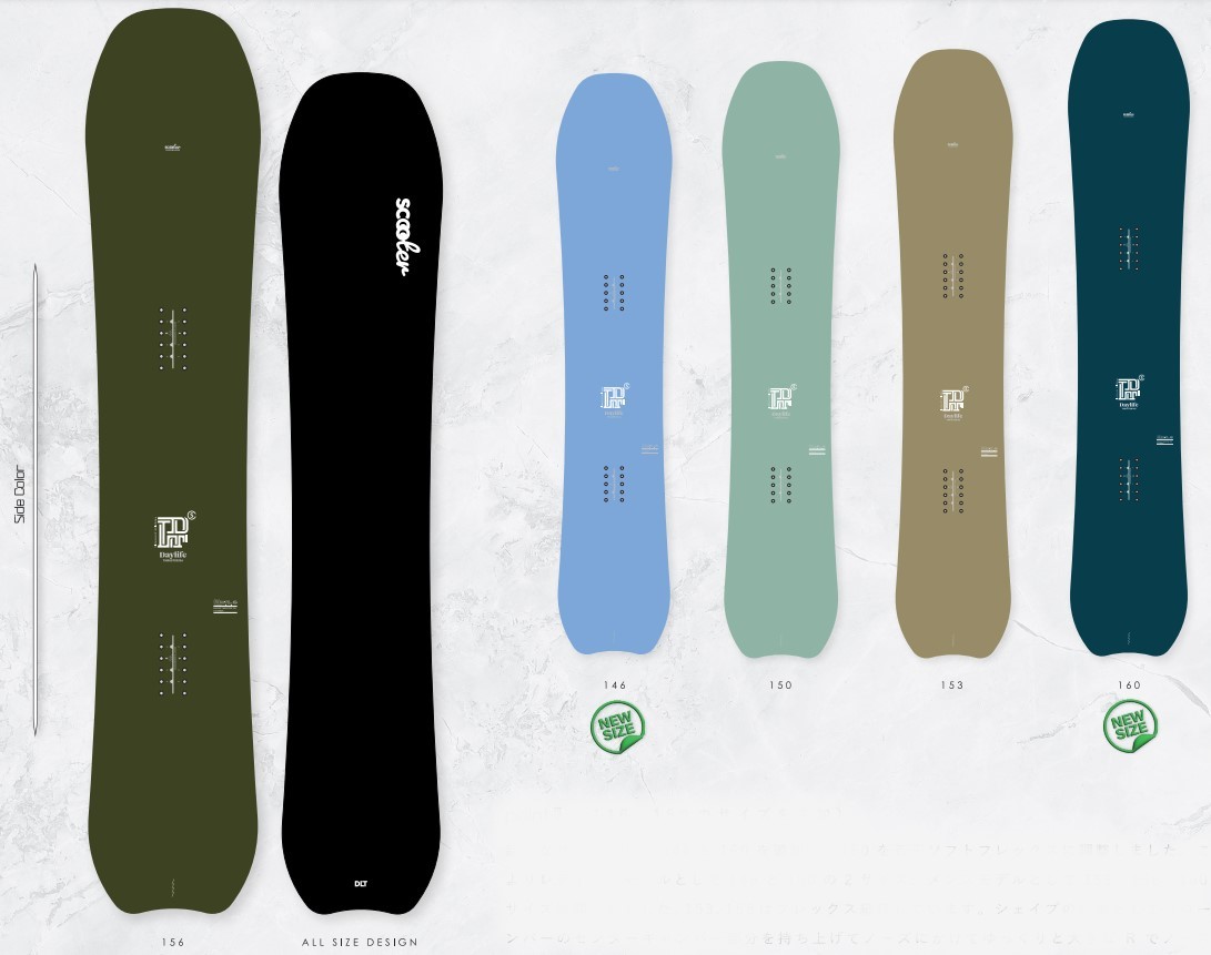 | 특징 | 설면저항을 감소시키면서 스피드가 붙는 S캠버로, 파우더에서의 부력과 하드한 슬롭에서의 안정성과 턴 성능을 양립시킨 올마운틴 모델 DAYLIFE-THRUSTER 입니다. 테일 부분을 깊게 자른 2R 사이드 커브와 테이퍼, 약간의 셋백으로 균형을 맞춘 쉐이프는 S캠버와의 발군의 상성으로 설질에 관계 없이 부력, 가속성, 안정성 ,턴 성능을 충분히 발휘합니다. 파우더에서는 일정한 부력을 생성하면서 활주하고 쉬운 엣지전환을 실현함과 동시에 하드한 슬롭에서는 안정된 카빙성능을 제공합니다. 산 전체를 기분 좋게 타고 싶다는 유저들의 요청에 응하여 만들어졌습니다. 오전에는 파우더, 오후에는 하드한 슬로프와 지형에서 마음껏 프리라이딩을 즐기는 올마운틴 모델 DAYLIFE-THRUSTER 입니다. POINT (146,160 사이즈 추가) 새로운 사이즈 146과 160을 추가하여 150을 약간 소프트 플렉스로 조정하였습니다. 여성용 모델로 146과 150 2개 사이즈, 남성용 모델로 153, 156, 160 3개 사이즈 쉐이프의 특징으로는 로우 캠버의 센터 캠버 부분을 끌어올리고 노즈의 부드럽고 큰 R이 노즈 킥 부분으로 이어져서 설면에서의 저항을 경감시키면서, 가속성과 안정성을 만들어냅니다. 파우더에서는 일정한 부력을 만들고 저항이 적어 주행시 가속이 빠른 셋팅이 되었습니다. 파우더 턴의 시작시점에도 노즈의 도입이 스무스하고, 트리런에서의 세밀한 엣지전환이 용이하면서, 슬로프에서의 하이스피드 턴을 즐기게 해줍니다. 보드 전체가 캠버의 형태이므로 하드한 슬롭의 카빙은 물론, 반발력도 우수합니다. 세미 스왈로우 테일 이지만, 테일킥이 있기 때문에 스위치 라이딩도 물론 가능합니다. 파우더가 있던 없던 하루종일 1장으로 즐길 수 있는 보드입니다. |