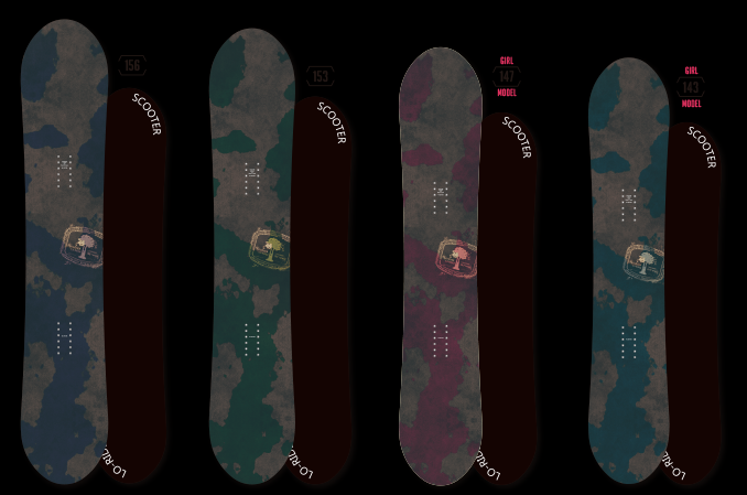 포인트 :타나카 요우의 사용모델로 정평이 난 G8의 쉐이프와 구성을 유지한채로 셋백 20mm를 넣어 플렉스 패턴도 셋백에 맞추어 재구축 하였습니다. 결과정으로 G8보다 플렉스가 약간 더 하드해졌습니다. 눈이 내릴때나 특수지형 라이딩에도 테일이 걸리적 거리지 않아서 턴 후반이 편안한 스무스한 라이딩이 가능합니다. 부드러워서 컨트롤이 쉬운데도 확실한 프리런이 가능한 SCOOTER 유일의 디렉셔넉 트윈팁 입니다.