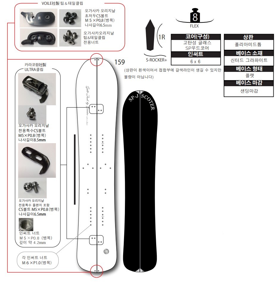 워킹시의 등판력은 물론 활주성능에도 물론 신경써서 개발한 스플릿 보드 SP-J. 다양한 상황에서의 적응력이 좋은 159cm에 S락커, 상판에 눈이 잘 붙지 않는 화이트 컬러를 채용. 부력, 트랙션, 활주성능, 실제의 사용감에 이르기 까지 철저하게 연구하여 개발하였습니다. 특히 활주시의 플렉스에 주목하여 아이스반이나 특수지형에서도 확실한 그립을 주는 플렉스패턴이 특징입니다. 정밀도 높은 완성도에 주목해주십시요