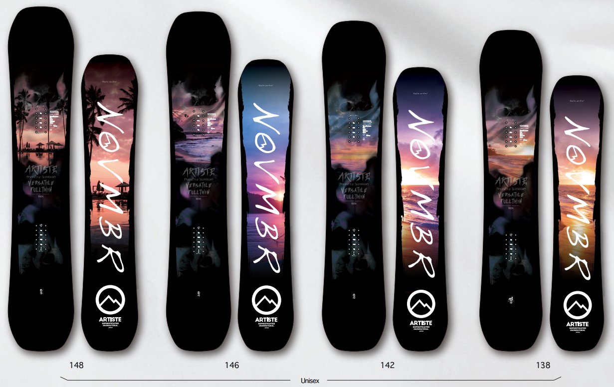 슬로프스타일이라는 프리스타일에서의 올라운드적인 능력을 요하는 카테고리에 대응하는 여러가지 성능을 가진 베스트샐러 ARTISTE가 풀모델체인지. 새로운 몰드는 접점 부근의 그립력을 향상시켜 카빙에서의 그립력을 강화하여 높은 프리라이딩 성능을 발휘합니다. 또한 복합 사이트컷을 사용하여 원호수를 증가시켜서 보다 스무스한 턴호를 그리게 해줍니다. 보강재에는 초고강도 폴리에틸렌리본 25W를 채용, 높은 반발력과 진동흡수성을 발휘합니다. 또한 A.P.A PLATE TYPE3 EVO를 배치하여 경량화와 충격흡수를 꾀하였습니다. 캠버에는 FULL CAMBER 를 채용하여 엣지그립의 강화에 의한 프리라이드 성능과 노즈/테일 부분의 높은 반발성능을 향상시켰습니다. 에어계열, 지빙계열 모두 대응하는 프리스타일 특성이 높지만, 기본이 되는 활주성이 높고 풀트윈이라고는 느껴지지 않는 카빙성능을 발휘합니다. 파우더라이딩이나 프리라이딩에 대응하는 셋백포지션이나 다채로운 스탠스와이드가 가능한 2x6 버서타일 인서트홀을 채용하여 보다 폭넓은 라이딩스타일에 대응합니다. 이 시대의 스노보드씬을 아우르는 정당한 진화를 계속하는 ARTISTE. 1장으로 다양한 시츄에이션에 대응하는 폭넓은 성능을 추구한 풀트윈모델입니다. 낭창하면서도 완벽한 발란스의 완성도 높은 버서타일모델입니다