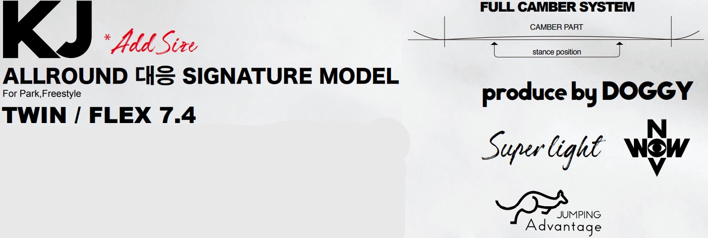 *WOW와 같은 DOGGY의 시그니쳐모델. 마치 해머헤드같은 스퀘어 형태가 눈길을 끄는 오리지날 쉐이프를 채용. 고집스레 추구해 온 알리 성능은 그대로, 경쾌한 컨트롤이 가능하도록 설계되었습니다. 프리라이딩에서의 카빙능력도 훌륭합니다. 다소 하드한 플렉스이지만 높은 조작성을 해치지 않도록 셋팅하였습니다