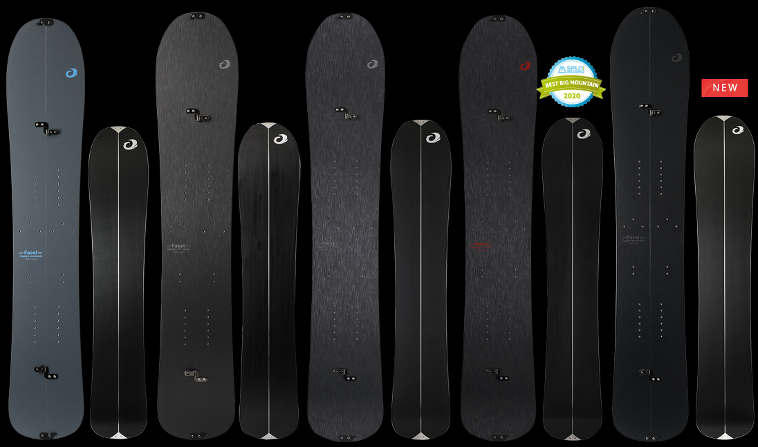 | 특징: | 스플릿보드는 등판성능(일점하중)과 활주성능(이점하중)이 요구된다. 이 두가지의 요소를 융합시키는 것은 개발자에게 있어 어려운 과제이다. 오가사카 스노우보드는 품질과 성능에 대한 집착 때문에 수없이 많은 테스트 라이딩을 시행하였고, 결국 얻어낸 답이 [FACET]이다. 고집스레 독자개발한 비스를 채용하였고, 이음매 없는 깔끔한 접합면은 해외의 스플릿보드 전문 사이트에서 "마치 보석 같다."는 평가를 받았다. 유럽 알프스의 급사면에서도 아무 문제 없이 사용할 수 있다는 높은 평가를 얻었다.<splitboard.com> 164HD는 splitboardmagazine.com의 "BEST BIG MOUNTAIN AWARD"를 수상하였다. 20/21 모델부터 더 깊은 파우더에서도 치고 나가는 168, 빅마운틴 라이더들이 기다려온 강력한 그립 성능을 가진 스왈로우 테일이 추가 되었다. |