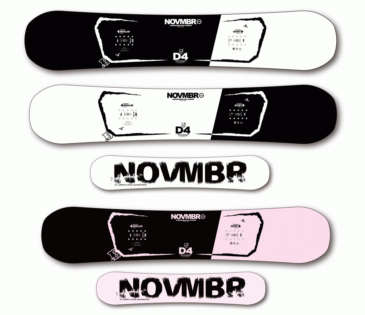 | 특징: | 라인업중에서 가장 소프트한 플렉스를 가진 풀트윈 모델. 쉐이프와 내부구조가 전후대칭인 풀트윈 구조로 레귤러/스위치 어느 쪽에도 위화감이 없는 컨트롤 성능을 가지고, 트릭의 베리에이션을 넓혀주는 고성능 모델입니다. D4는 보드 윗면에 채용하고 있는 유리섬유를 베이스 쪽 보다 소프트하게 설정하여서 상부와 하부의 탄성률의 차이를 두는 것으로 소프트 플렉스 이면서도 높은 반발력이라는 상반된 성능이 양립합니다. 또한 발바닥에 독자개발한 DUCK PLATE(TYPE4)를 장착. 발 주변과 스탠스 사이의 자유도를 향상시켜서 양 발에 독립적인 움직임을 확보하여 그라운드 트릭이나 지빙에서의 섬세한 움직임에 대응력을 향상 시켰습니다. 보강재로 노즈와 테일에 CARBON RIBBON 25W배치한 W POWER CARBON RIBBON을 채용 하여서 트릭의 발동과 알리에 필요한 스냅력을 강화. 노즈/테일을 튕기는 느낌을 강하게하여 고회전 스핀과 더 높은 알리를 가능하게 합니다. 20/21 모델에서는 새롭게 DESIRE와 같은 몰드를 채용. 거기에 프리캠버를 채용하여 프레스나 드라이브 성능이 향상되었습니다. ※지난 시즌보다 플렉스를 더 소프트하게 변경. 휘어짐을 사용한 프레스 계열 트릭이 쉬워졌고, 작은 힘으로도 쉽게 조작할 수 있습니다. 더 크게 솟은 형태의 컨백스솔을 채용하여 스무스한 스윙 성능과 드라이브 성능을 겸비 하였습니다. 순간적 엣지그립력을 높인 FLASH GRIP SIDECUT을 채용 하였습니다. |