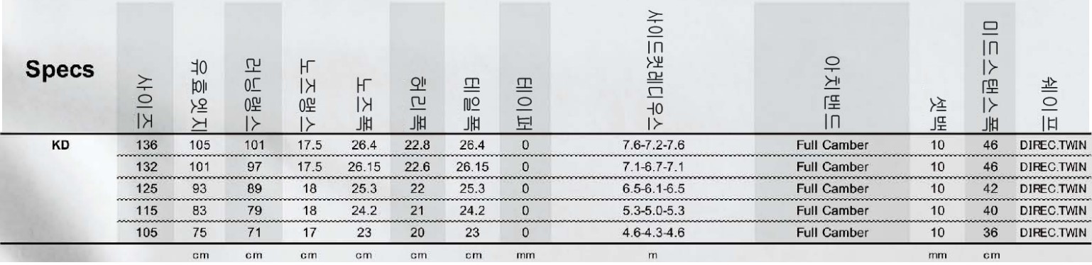 | 구성재료 | FULL CAMBER SUPER LIGHT CORE(FULL LENGTH WOOD) |