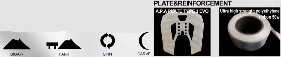 | 구성재료 | FULL CAMBER, A.P.A PLATE TYPE 3 EVO, SUPER LIGHT PRO CORE |