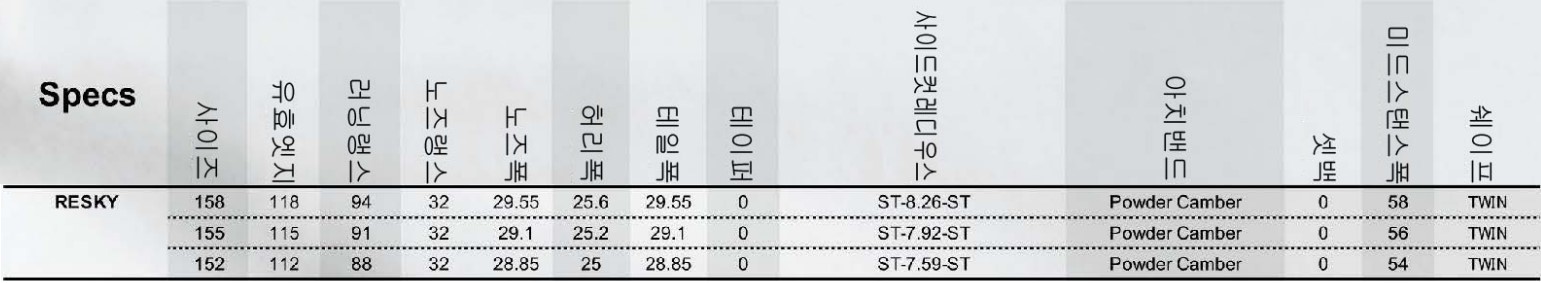 | 모델명 | RESKY(Powder, All terrain, Park) |
