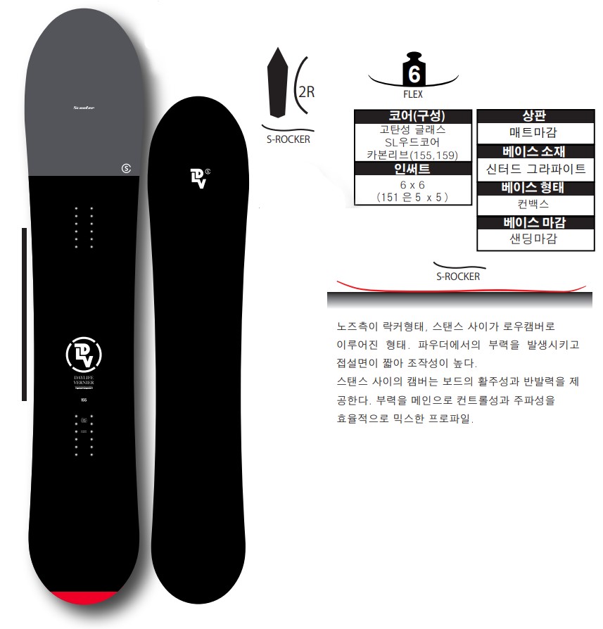 | 특징 | 일본의 파우더환경을 고려하여 컴팩트 하고 경량화된 경쾌한 스윙웨이트와 S락커에 의해서 파우더에서의 부력과 추진력, 빠른 체인지에 의한 턴 같은 파우더 속에서 자유자재로 컨트롤 할 수 있도록 만든 것이 DAYLIFE-VERNIER입니다. 테일쪽에 깊은 래디우스가 배치된 2R사이드컷, 그리고 약간의 테이퍼드 형태로 셋백을 주어 파우더나 여러 지형에서도 가속성과 알리 같이 테일 부분을 확실히 사용할 뿐만 아니라 깊은 파우더 에서의 엣지체인지와 프론트 턴의 초반과 스피드컨트롤 등 좁은 나무 사이에서도 원하는 라인을 확실하게 그릴 수 있도록 확실한 컨트롤을 제공합니다. 또한 요철이 심해 뚫고 나가기 어려운 곳이나 파우더 이외의 부정지사면에서도 유연하게 대응하고, 정설된 슬로프에서는 스무스한 카빙턴도 어렵지 않게 하게 해주는 파우더보드, DAYLIFE-VERNIER입니다. 포인트 : 그래픽 변경 모델 155와 159는 스탠스 사이에 카본의 립을 배치하였습니다. 전체의 플렉스를 하드하게 하지 않고 등에 짐을 짊어졌을 때의 고속턴 같은 과도의 부하가 걸렸을 때에 보드가 지나치게 기울어지지 않도록 제어하여 안정된 턴을 가능하게 합니다. 파우더 속에서 움직이고 멈추는 동작이나 지형대응능력, 단차가 심한 슬로프 같은 다양한 상황에서 컨트롤을 잃지 않도록 고부하의 고속턴까지 대응합니다. 노즈락커의 각도와 유효엣지 위치 같은 세세한 부분까지 튜닝한 세련된 쉐이프. 딥파우더의 부자유한 상황에서도 높은 컨트롤이 가능하도록 고려한 파우더보드입니다. |