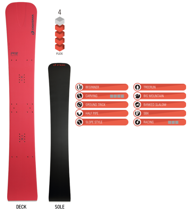 | 특징 | 「RX」는 월드컵 모델 「LX」의 테크놀로지를 반영시키면서도 타기 쉬움을 추구한 알파인 보드의 레이싱 모델입니다. 프로 레이서로 활동하며 2022년 JSBA 전일본 기술선수권에서 우승을 차지한 토미타 요스케 프로가 애용하는 모델입니다. 레이스 씬에서는 안정된 엣지그립과 순간의 대응력이 요구됩니다. 그들의 요구에 응 하기 위해 탑시트에는 활주면과 같은 소재인 폴리에틸렌(PE)와 심재 아래위로 메탈(A7178)을 채용하였습니다. 심재를 중심으로 좋은 밸런스를 구성하였고 플렉스 밸런스와 아치 형태를 절묘히 조절하여서 탁월한 엣지그립과 조작성을 동시에 실현하였습니다. RX는 ALC플레이트 또는 IRON ROCK 플레이트 장착을 상정하여 설계하였지만 플레이트 없이도 충분히 힘을 발휘합니다. 이런 이유로「RX」는 레이서 뿐만 아니라 테크니컬 선수들에게서도 높은 지지를 받고 있습니다. 22-23 모델보다 발전되어 「LX」에서는 조금 어렵다고 느끼고 있던 분에게도 딱 좋은 사이즈 전개가 되었습니다. |