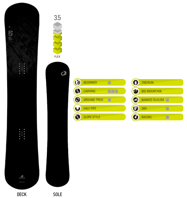 | 특징 | 「FC」는 1997년 부터 스테디셀러 모델이며 지금도 여전히 진화하고 있는 카빙 성능을 추구한 프리스타일 보드입니다.엣지를 날카롭게 세우고 눈을 흩날리지 않는 카빙을 원하는 분부터 현역 데몬스트레이터까지 폭 넓은 층에게 사랑받는 모델입니다. 길이에 비해 유효엣지가 긴 세미해머형태가 최대의 특징입니다. 유효엣지가 긴 만큼 라운드 형태에 비해 저속에서의 미세한 조작성이 부족한 만큼 발군의 엣지그립력과 턴의 안정감을 제공합니다. 완전한 해머헤드형태가 아닌 세미해머형태를 채용하여서 프리스타일의 자유도를 남겨두었습니다. 스노보드를 즐기는 여러 방법 중에서도 최신 스타일의 카빙에 비중을 두는 분께 추천하는 보드입니다. 22-23모델의 와이드 사이즈(157W/160W/163W)는 다른 컬러로 전개됩니다. 또, 21-22 모델로 일시 단종되었던 디자인 차이의 FC LIMITED가 블랙 리미티드(154/157/160의 3 사이즈 한정)로서 부활했습니다. |